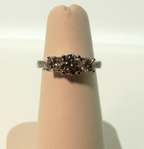 3 stone pave sides Platinum and Diamond Engagement Ring, having pave side diamonds set in shank Like Loading...